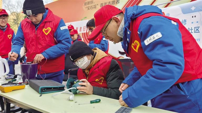 青年志愿者为居民维修电器 兰州石化公司供图